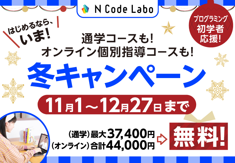 【入会金・初月無料|冬の入会キャンペーン】2025年のうちにプログラミングスキルを高めるなら、N Code Labo!