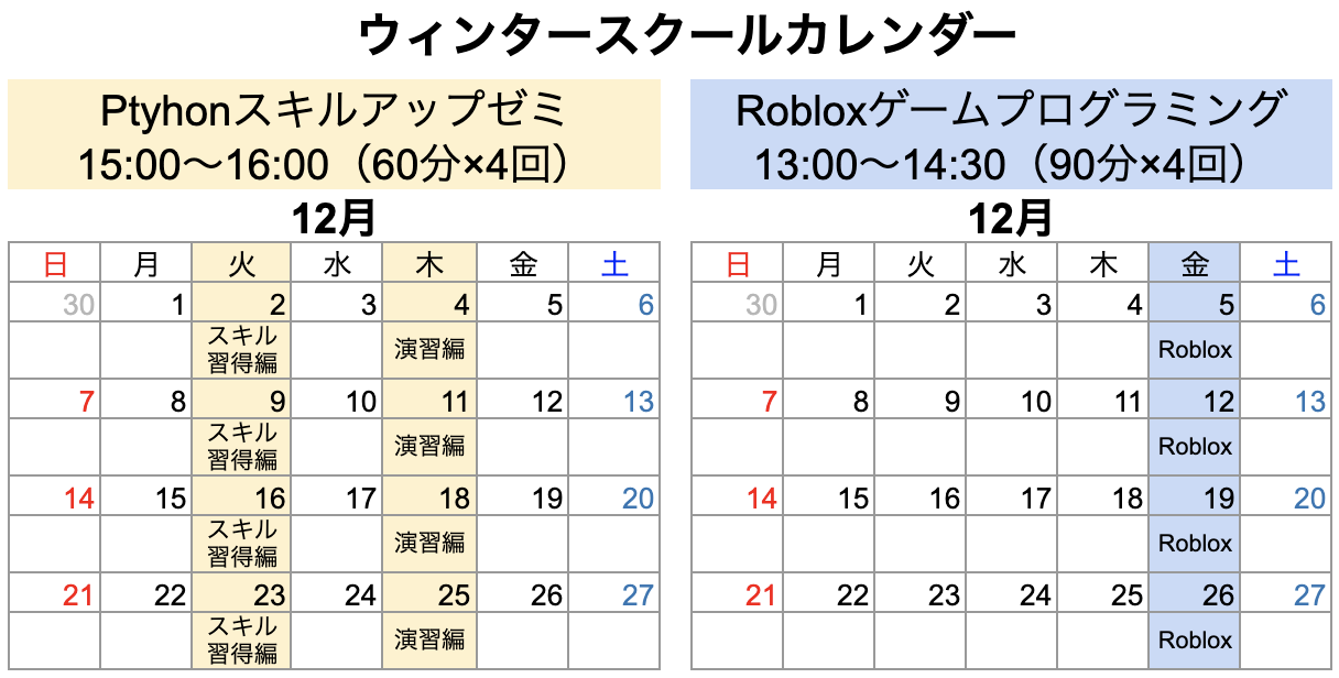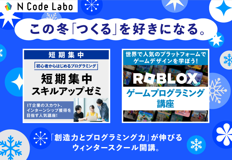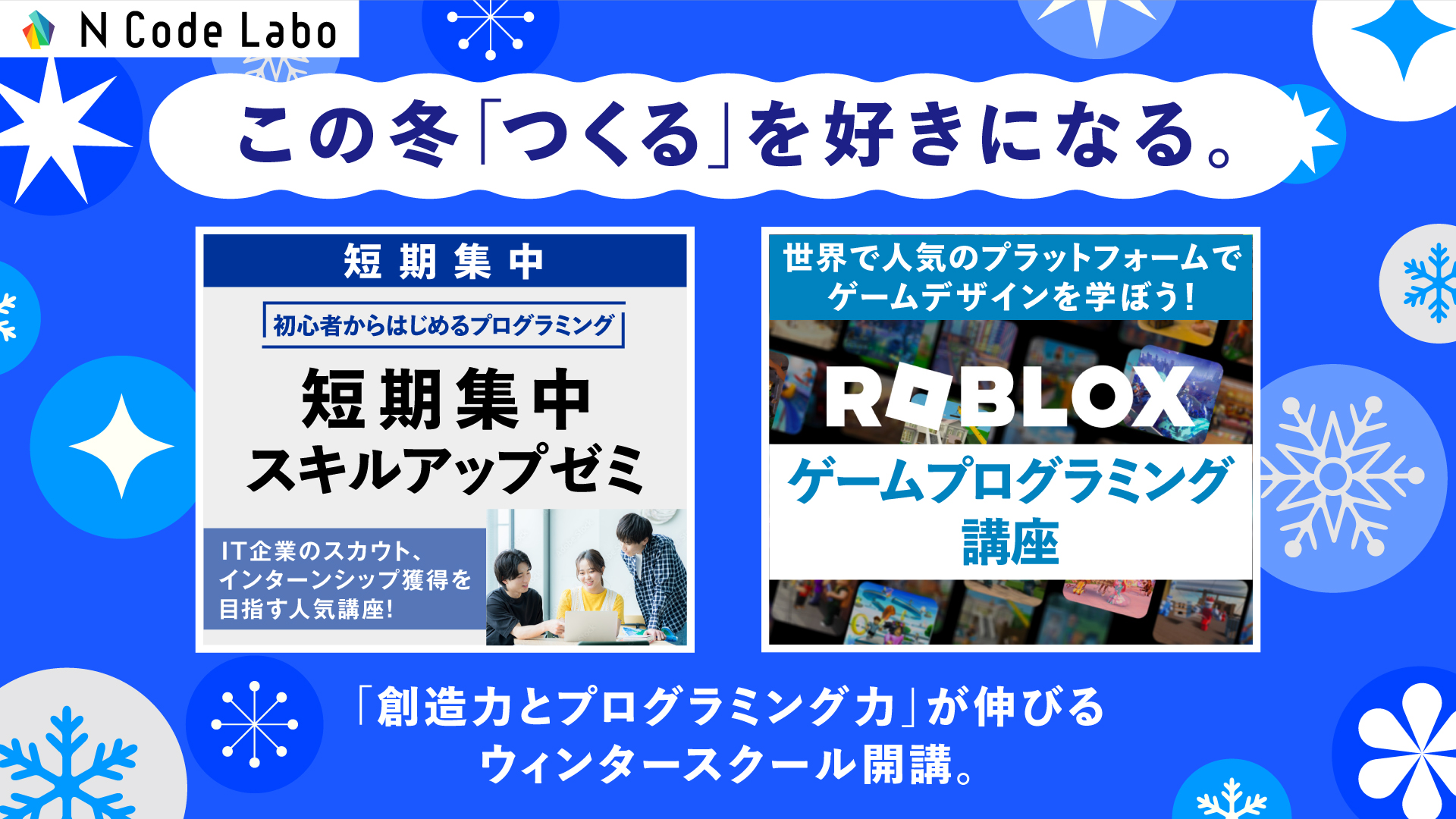 【ウィンタースクール】この冬、「好き」を「できる」に変える体験を!N Code Labo 冬のオンライン特別講座(Roblox・Python)